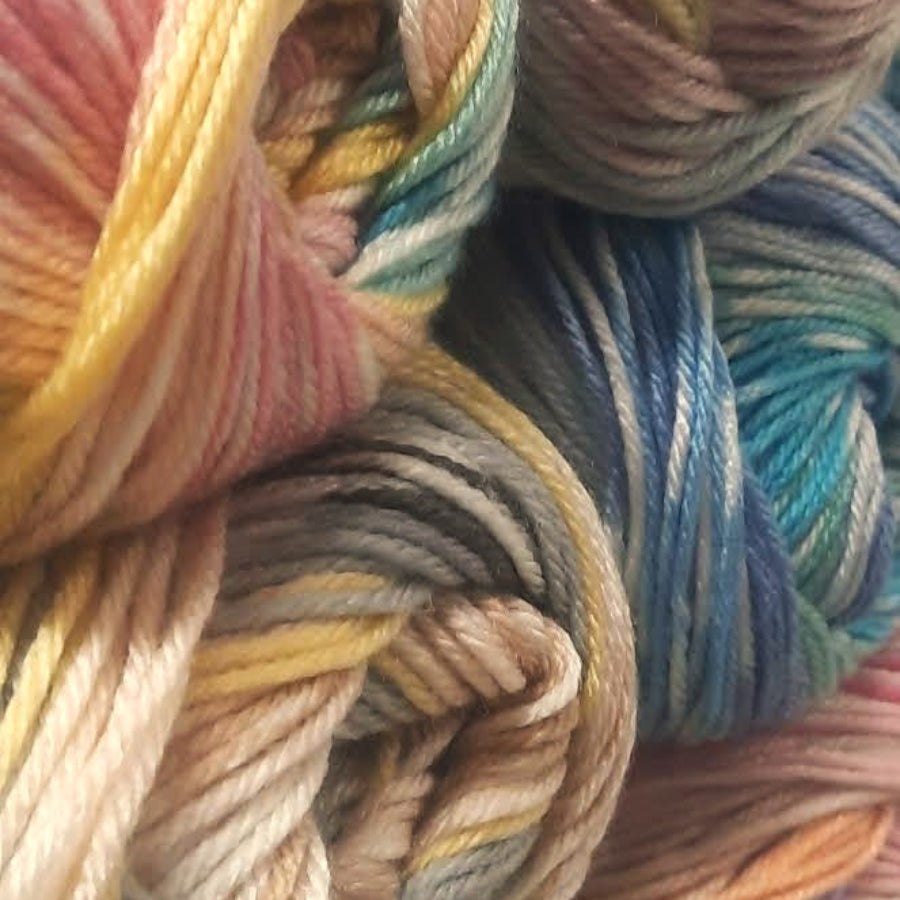 This 100% anti-pilling acrylic yarn is soft, durable, and wonderfully easy to care for. Gentle colour changes run throughout the yarn, creating a beautiful Nordic Fair Isle–style effect as it is knitted or crocheted.