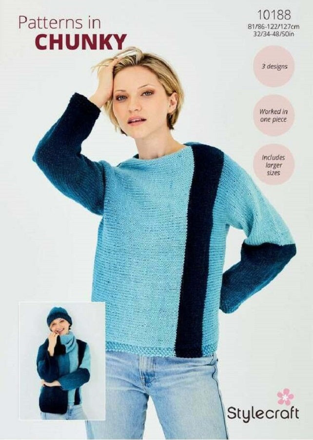 Stylecraft Horizon Chunky Pattern 10188 - Sweater, Hat & Scarf